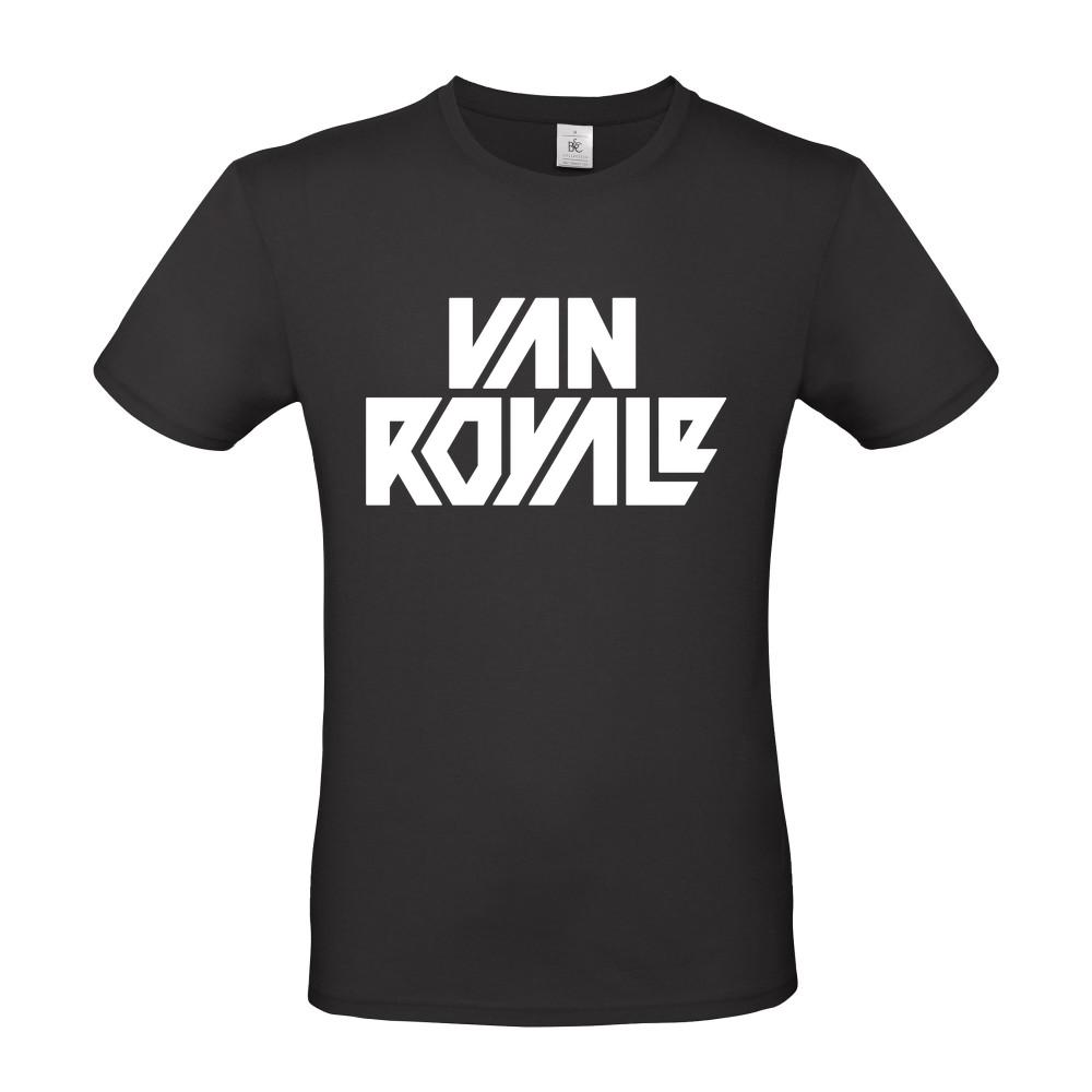 The Van Royale Logo printed in white on a premium black cotton t-shirt.